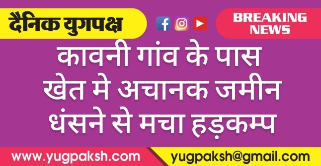 कावनी गांव के पास खेत मे अचानक जमीन धंसने से मचा हड़कम्प