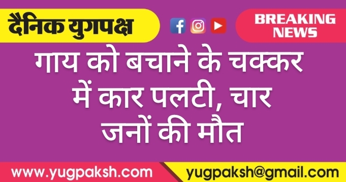 गाय को बचाने के चक्कर में कार पलटी, चार जनों की मौत