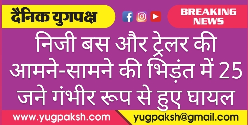 निजी बस और ट्रेलर की आमने-सामने की भिड़ंत में 25 जने गंभीर रूप से हुए घायल