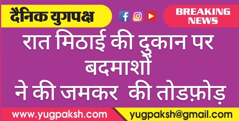रात मिठाई की दुकान पर बदमाशों ने की जमकर की तोडफ़ोड़