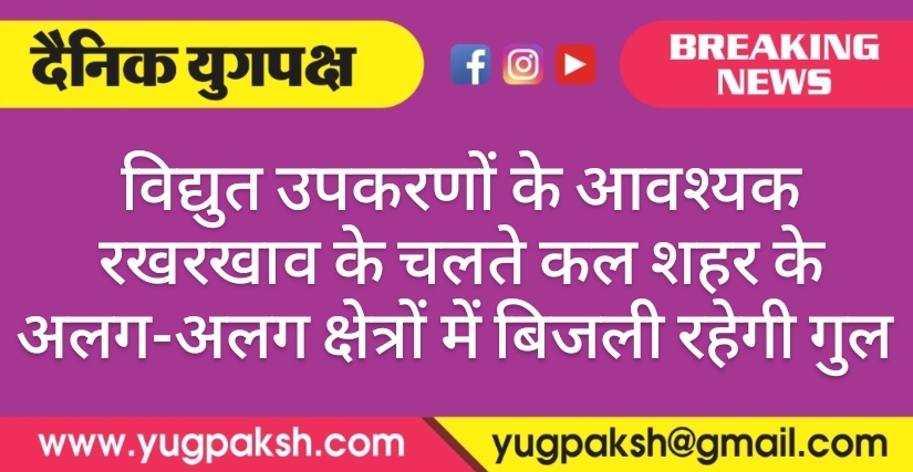 विद्युत उपकरणों के आवश्यक रखरखाव के चलते कल शहर के अलग-अलग क्षेत्रों में बिजली रहेगी गुल
