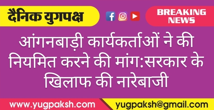 आंगनबाड़ी कार्यकर्ताओं ने की नियमित करने की मांग:सरकार के खिलाफ की नारेबाजी