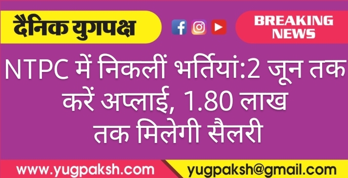 NTPC में निकलीं भर्तियां:2 जून तक करें अप्लाई, 1.80 लाख तक मिलेगी सैलरी