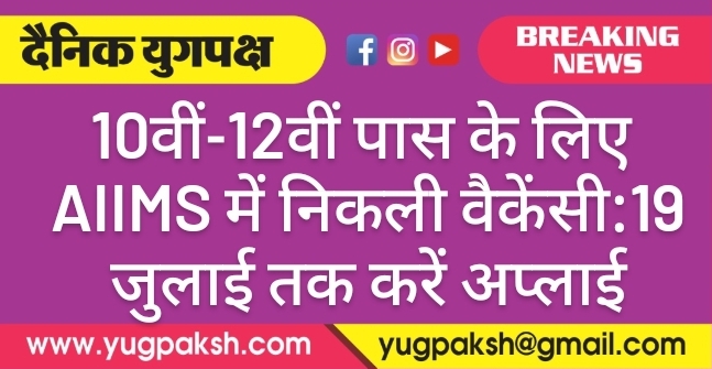 10वीं-12वीं पास के लिए AIIMS में निकली वैकेंसी:19 जुलाई तक करें अप्लाई