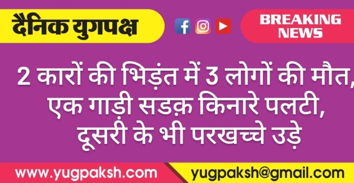 2 कारों की भिड़ंत में 3 लोगों की मौत,एक गाड़ी सडक़ किनारे पलटी, दूसरी के भी परखच्चे उड़े