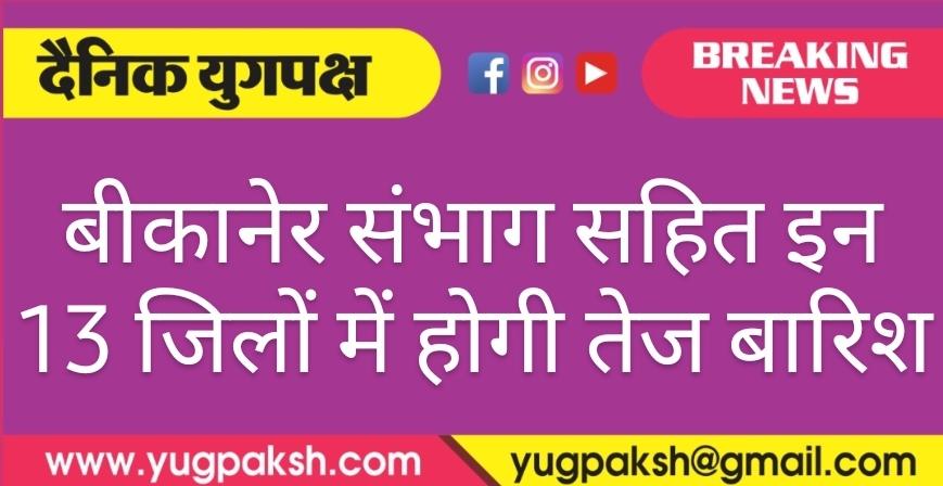 बीकानेर संभाग सहित इन 13 जिलों में होगी तेज बारिश