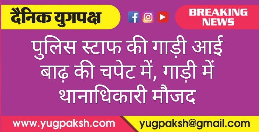 पुलिस स्टाफ की गाड़ी आई बाढ़ की चपेट में, गाड़ी में थानाधिकारी मौजद