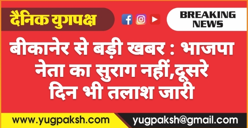 बीकानेर से बड़ी खबर : भाजपा नेता का सुराग नहीं,दूसरे दिन भी तलाश जारी