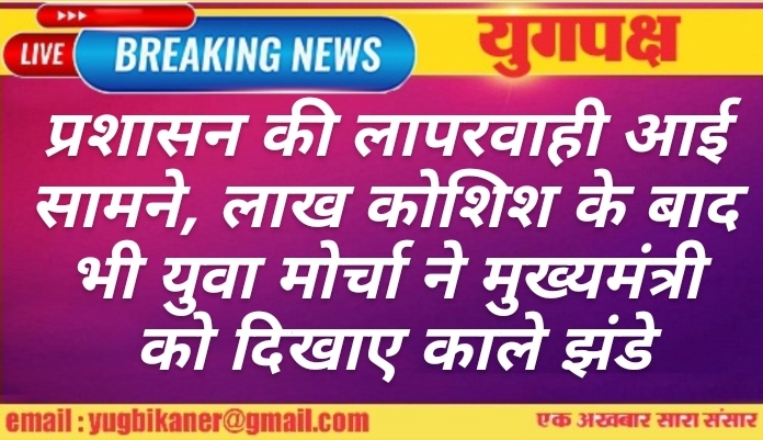 प्रशासन की लापरवाही आई सामने, लाख कोशिश के बाद भी युवा मोर्चा ने मुख्यमंत्री को दिखाए काले झंडे