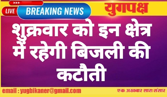 शुक्रवार को इन क्षेत्र में रहेगी बिजली की कटौती