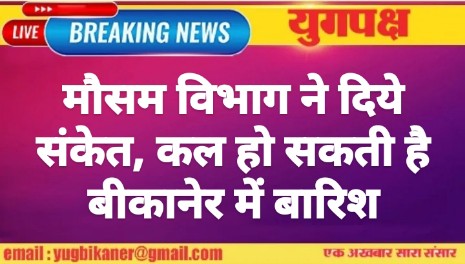 मौसम विभाग ने दिये संकेत, कल हो सकती है बीकानेर में बारिश