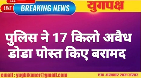 पुलिस ने 17 किलो अवैध डोडा पोस्त किए बरामद