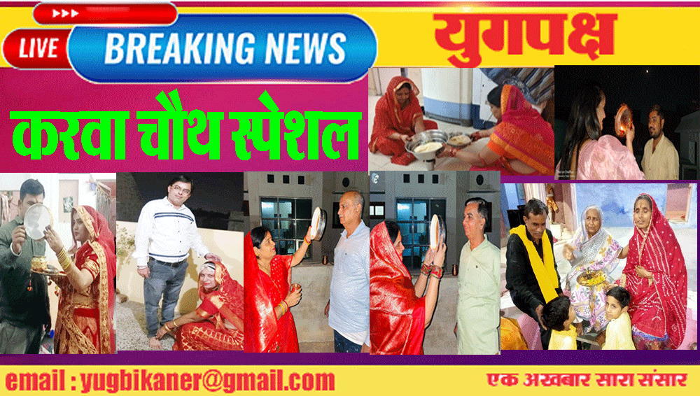 बीकानेर (नसं)। अमर सुहाग की कामना को लेकर मनाया जाने वाला करवा चौथ का पर्व धूमधाम से मनाया गया। महिलाओं ने अपने पति की दीर्घायु की कामना को लेकर निर्जल निराहार व्रत रखा। रात्रि में छलनी से चांद के दर्शन कर करवे से अध्र्य दिया। पतियों की आरती उतारी और उन्ही के हाथ से पानी पीकर और प्रसाद ग्रहण कर व्रत तोड़ा। चंद देव की सात फेरी परिक्रमा भी लगाई जाती है। बुजुर्गो से आर्शीर्वाद लिया जाता है। इससे पूर्व हाथों पर मेंहदी रचा महिलाओं युवतियों ने सोलह श्रृंगार किए सुहाग वस्त्र पहन सांय सामूहिक करवा चौथ की कथा भजन कीर्तिन किए। करवा चौथ के कारण चहल पहल रही। ज्र्वेलरी रेडीमेड वस्त्र, श्रंृंगार सामग्री की खूब बिक्री हुई। करवों में मोली अक्षत, चंदन हल्दी कुंकुम मेंहदी दुर्वा धूप दीप गंध के साथ जल भरा जाता है। पूजन के समय फल मेवे वस्त्र मिठाई व दक्षिण का बायना सास या घर की बुजुर्ग स्थिति को दिया जाता है। पतियों ने अपनी पत्नियों को उपहार दिए।