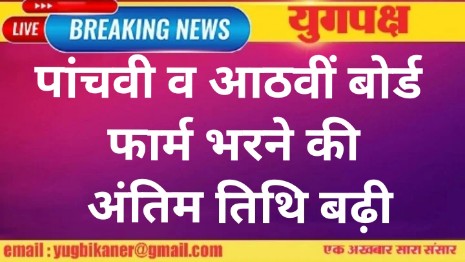 पांचवी व आठवीं बोर्ड फार्म भरने की अंतिम तिथि बढ़ी