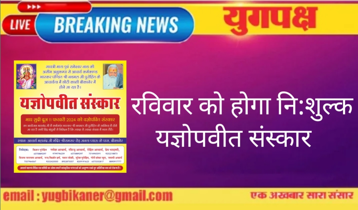 रविवार को होगा नि:शुल्क यज्ञोपवीत संस्कार