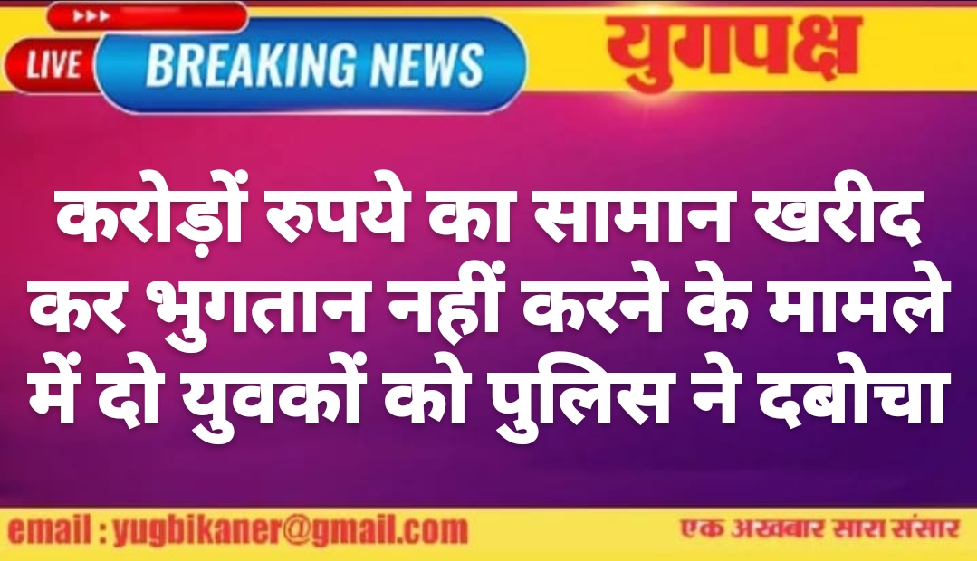 करोड़ों रुपये का सामान खरीद कर भुगतान नहीं करने के मामले में दो युवकों को पुलिस ने दबोचा