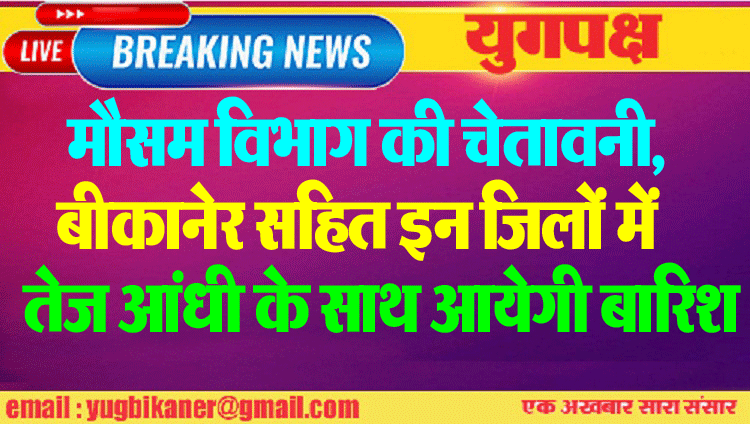 मौसम विभाग की चेतावनी, बीकानेर सहित इन जिलों में तेज आंधी के साथ आयेगी बारिश