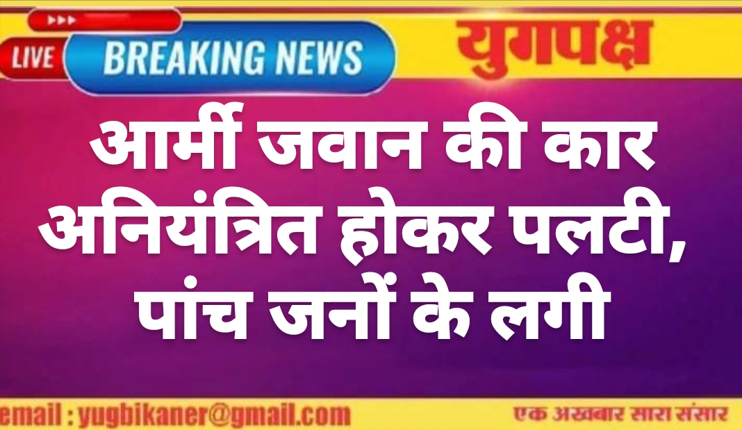 आर्मी जवान की कार अनियंत्रित होकर पलटी, पांच जनों के लगी