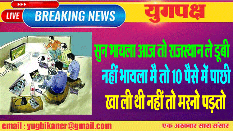 सुन भायला आज तो राजस्थान ले डूबी नहीं भायला मै तो 10 पैसे में पाछी खा ली थी नहीं तो मरनो पड़तो