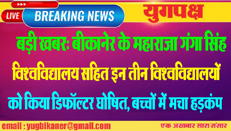 बड़ी खबर: बीकानेर के महाराजा गंगा सिंह विश्वविद्यालय सहित इन तीन विश्वविद्यालयों को किया डिफॉल्टर घोषित, बच्चों में मचा हडक़ंप