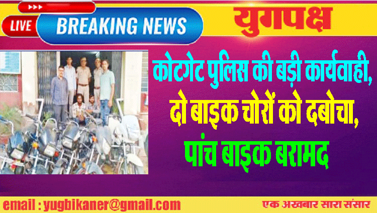 कोटगेट पुलिस की बड़ी कार्यवाही, दो बाइक चोरों को दबोचा, पांच बाइक बरामद