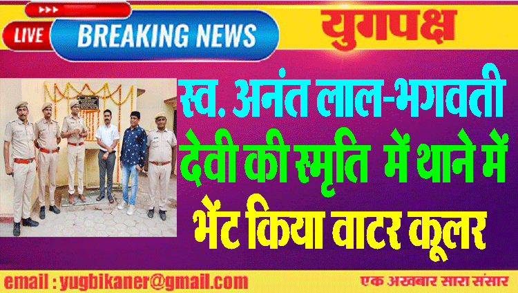 स्व. अनंत लाल-भगवती देवी की स्मृति में थाने में भेंट किया वाटर कूलर