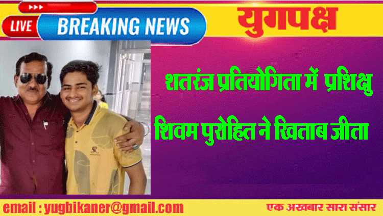 शतरंज प्रतियोगिता में प्रशिक्षु शिवम पुरोहित ने खिताब जीता