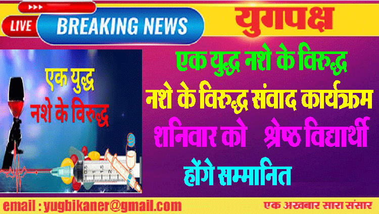 नशे के विरुद्ध संवाद कार्यक्रम शनिवार को श्रेष्ठ विद्यार्थी होंगे सम्मानित