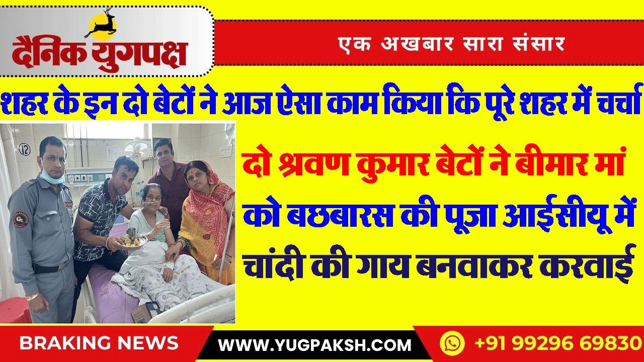 दो श्रवण कुमार बेटों ने बीमार मां को बछबारस की पूजा आईसीयू में चांदी की गाय बनवाकर करवाई