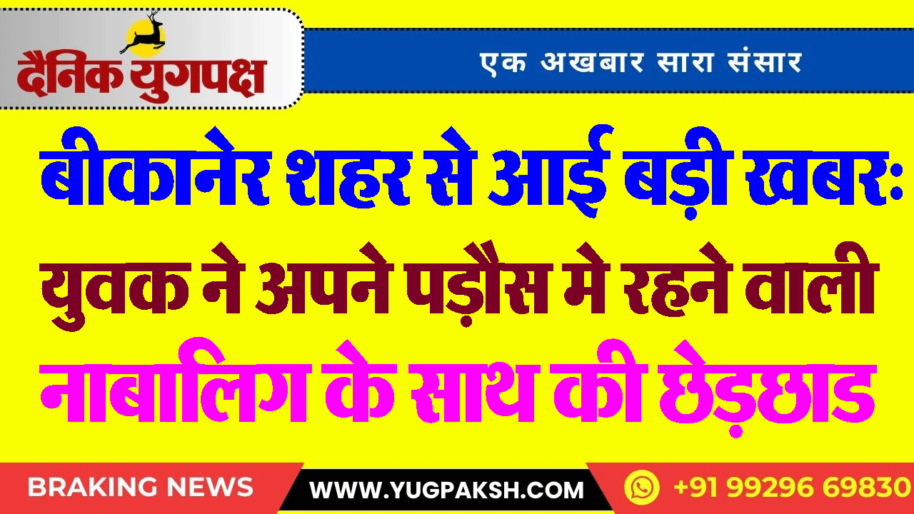 बीकानेर शहर से आई बड़ी खबर:युवक ने अपने पड़ौस मे रहने वाली नाबालिग के साथ की छेड़छाड