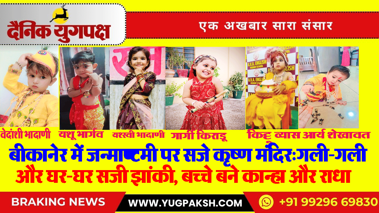बीकानेर में जन्माष्टमी पर सजे कृष्ण मंदिर:गली-गली और घर-घर सजी झांकी, बच्चे बने कान्हा और राधा