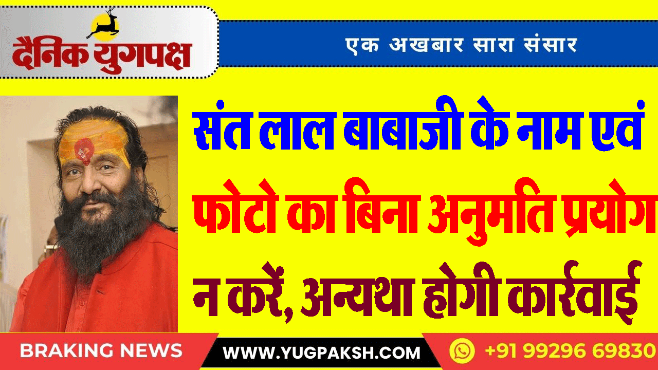 संत लाल बाबाजी के नाम एवं फोटो का बिना अनुमति प्रयोग न करें, अन्यथा होगी कार्रवाई