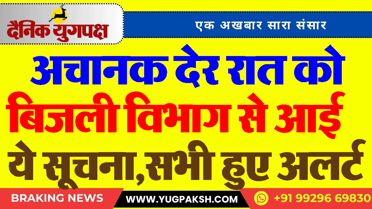 अचानक देर रात को बिजली विभाग से आई ये सूचना,सभी हुए अलर्ट