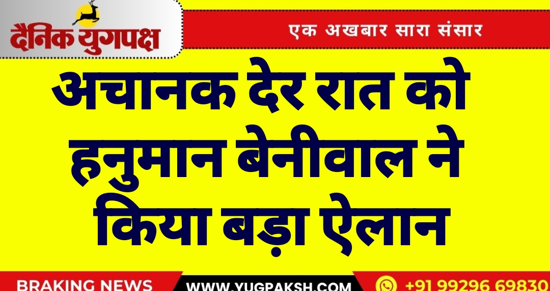 अचानक देर रात को हनुमान बेनीवाल ने किया बड़ा ऐलान
