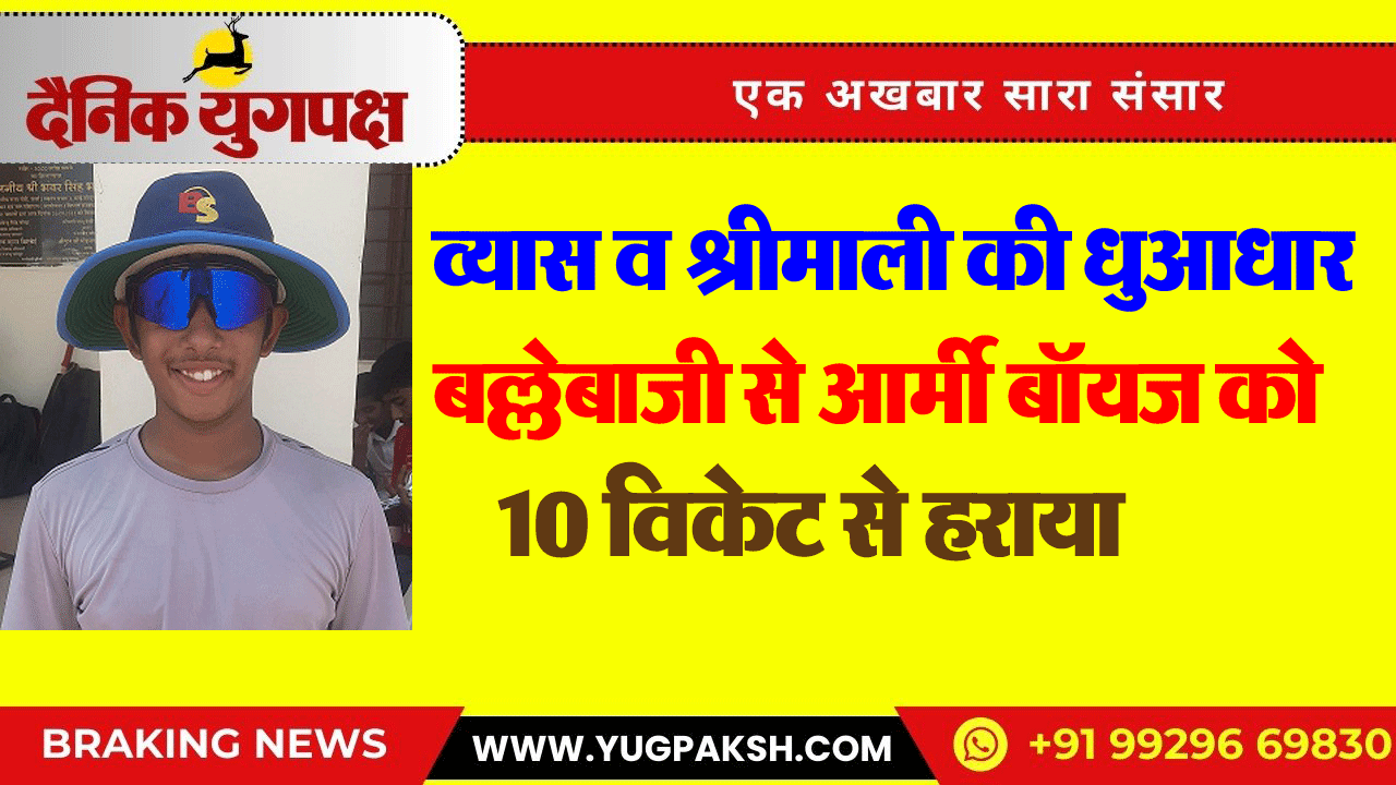 व्यास व श्रीमाली की धुआधार बल्लेबाजी से आर्मी बॉयल को 10 विकेट से हराया