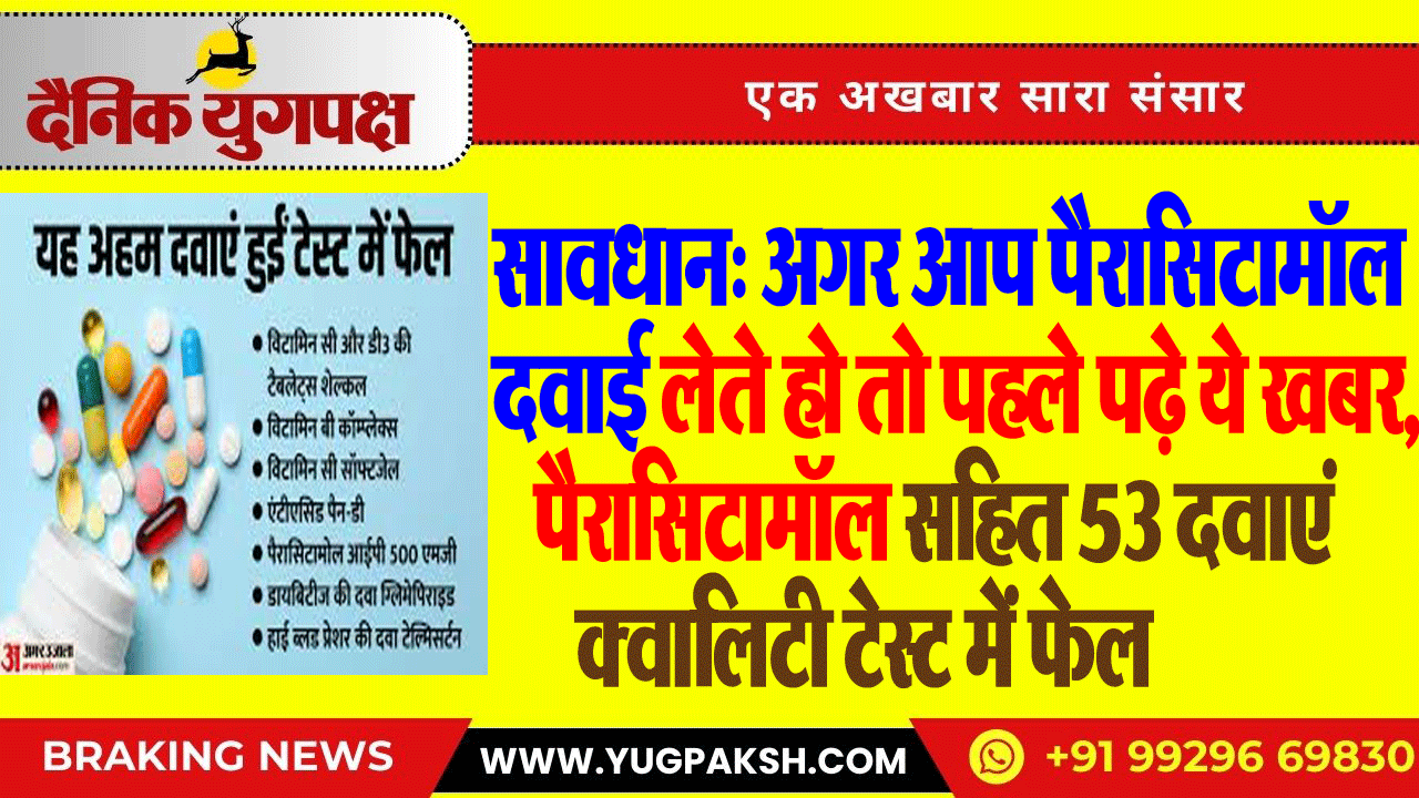 सावधान: अगर आप पैरासिटामॉल दवाई लेते हो तो पहले पढ़े ये खबर,पैरासिटामॉल सहित 53 दवाएं क्वालिटी टेस्ट में फेल