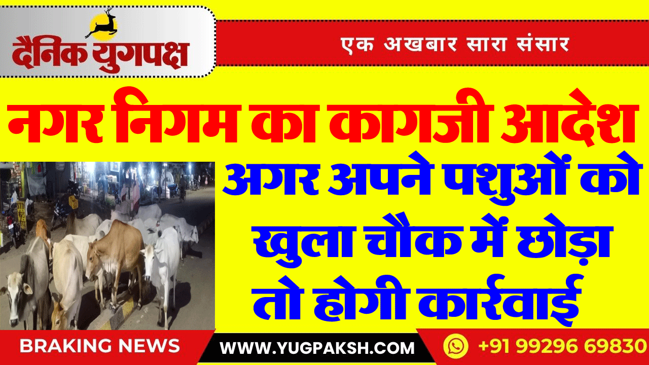 नगर निगम की कागजी आदेश अगर अपने पशुओं को खुला चौक में छोड़ा तो होगी कार्रवाई