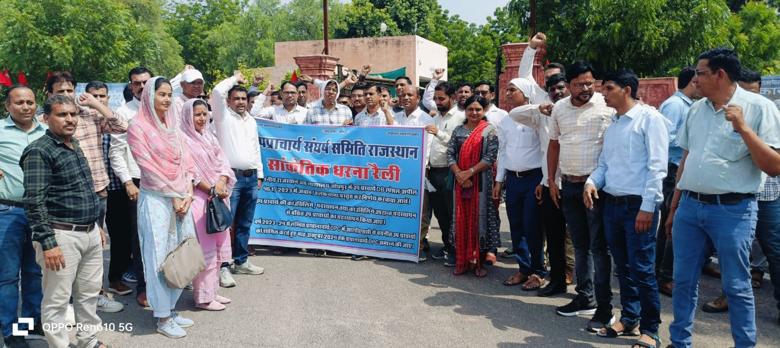 शिक्षा निदेशालय के बाहर शिक्षकों ने लगाया अनिश्चितकालीन धरना