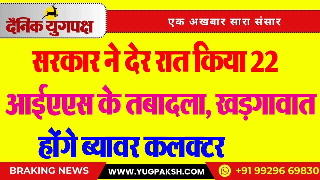 सरकार ने देर रात किया 22 आईएएस के तबादला, खडग़ावात होंगे ब्यावर कलक्टर