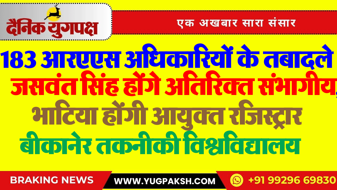 183 आरएएस अधिकारियों के तबादले जसवंत सिंह होंगे अतिरिक्त संभागीय आयुक्त