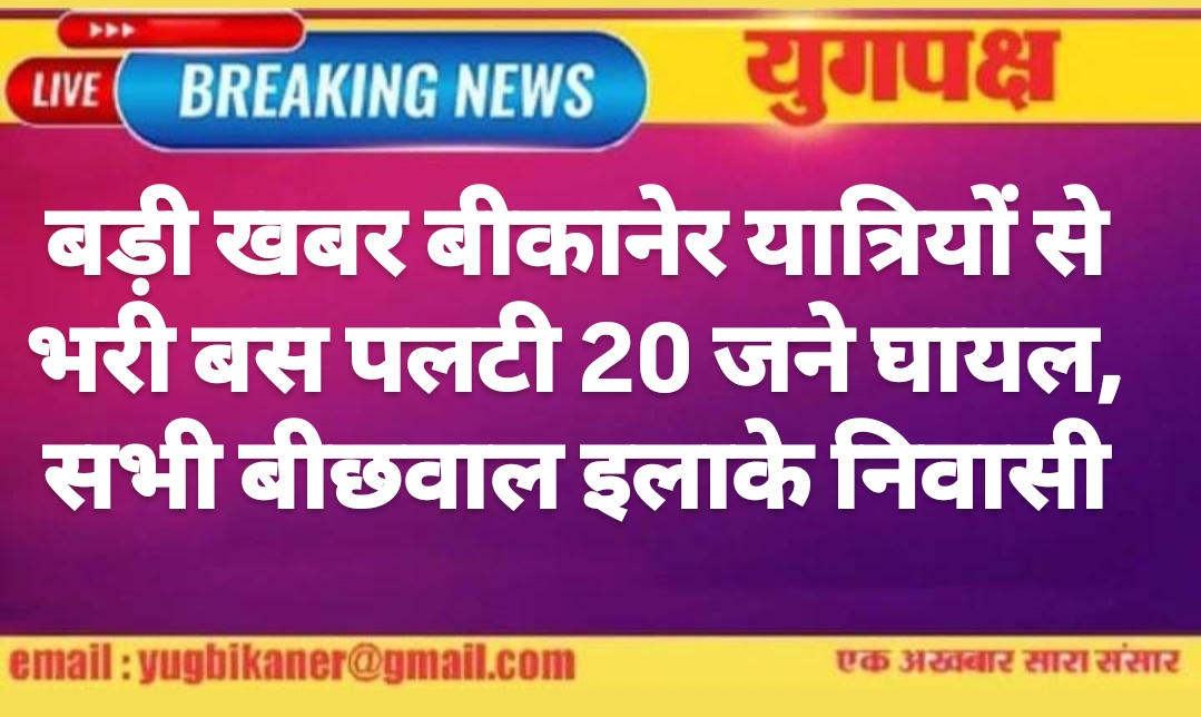 बड़ी खबर बीकानेर यात्रियों से भरी बस पलटी 20 जने घायल, सभी बीछवाल इलाके निवासी