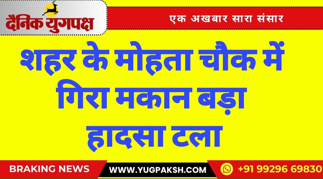 शहर के मोहता चौक में गिरा मकान बड़ा हादसा टला