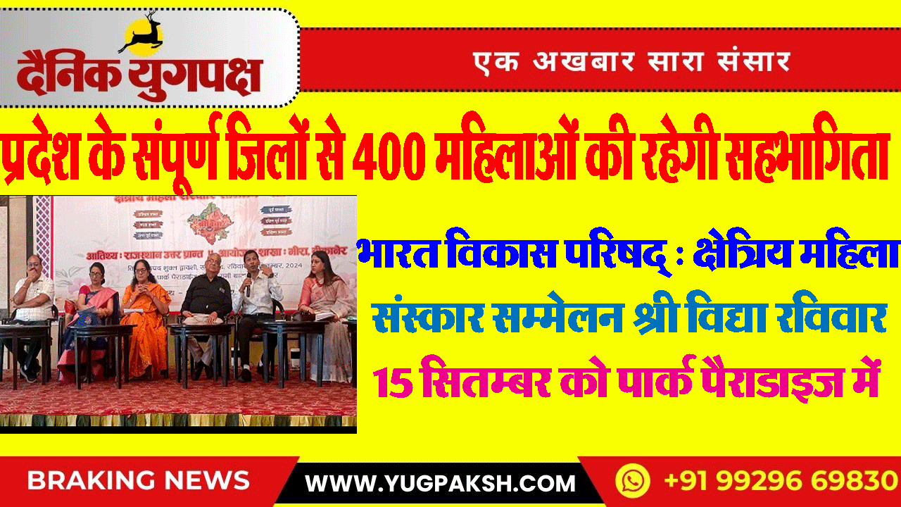 भारत विकास परिषद् : क्षेत्रिय महिला संस्कार सम्मेलन श्री विद्या रविवार 15 सितम्बर को पार्क पैराडाइज में