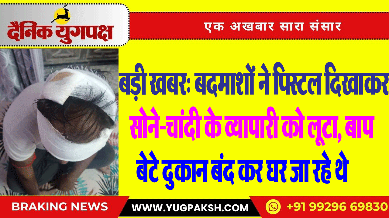 बड़ी खबर: बदमाशों ने पिस्टल दिखाकर सोने-चांदी के व्यापारी को लूटा, बाप बेटे दुकान बंद कर घर जा रहे थे