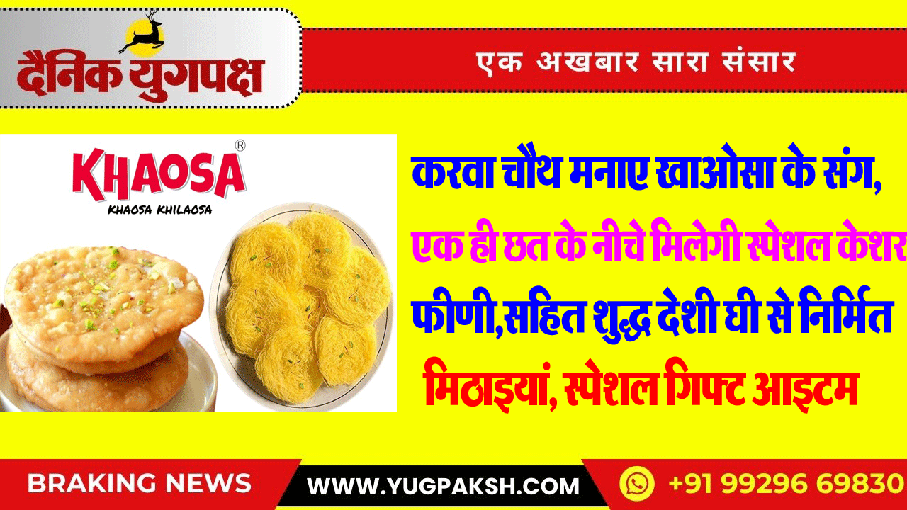 करवा चौथ मनाए खाओसा के संग, एक ही छत के नीचे मिलेगी स्पेशल केशर फीणी,सहित शुद्ध देशी घी से निर्मित मिठाइयां, स्पेशल गिफ्ट आइटम